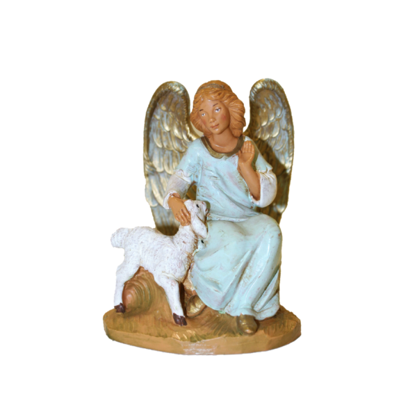 Angelo con pecorella. Misura cm 12 Fontanini. Realizzato con materiale infrangibile e dipinto a mano, il presepe FONTANINI è realizzato con cura ed entrato ormai “ad honorem“nella tradizione del Natale. Ogni anno novità e pastori da collezione ne arricchiscono il già numeroso “parterre”.