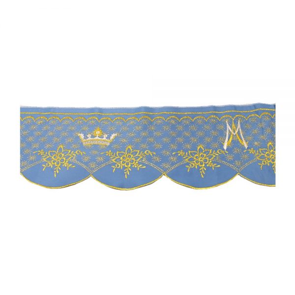 La bordura mariana con fiori dorati è una bordura realizzata color azzurro, con dei ricami color oro che rappresentano dei fiori e il simbolo mariano.