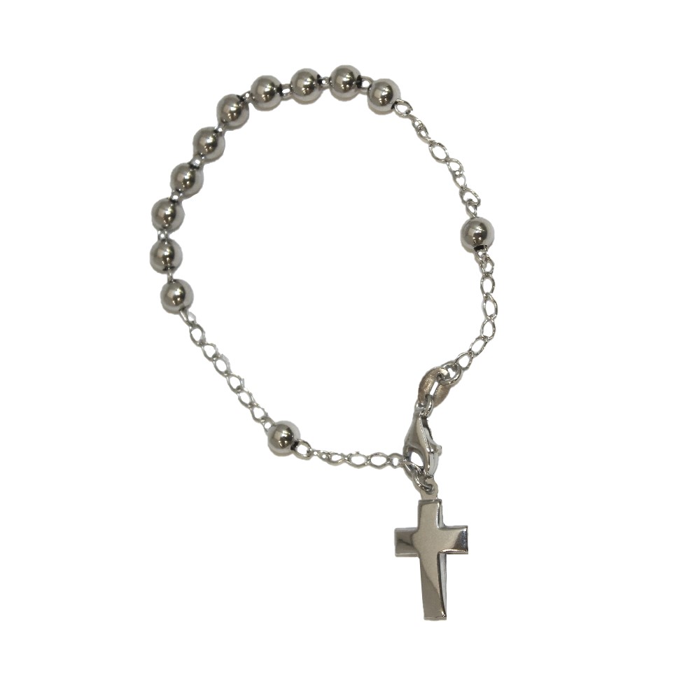 Il bracciale rosario in argento è un rosario realizzato in argento, formato da grani in argento e una croce, anch’essa argentata.