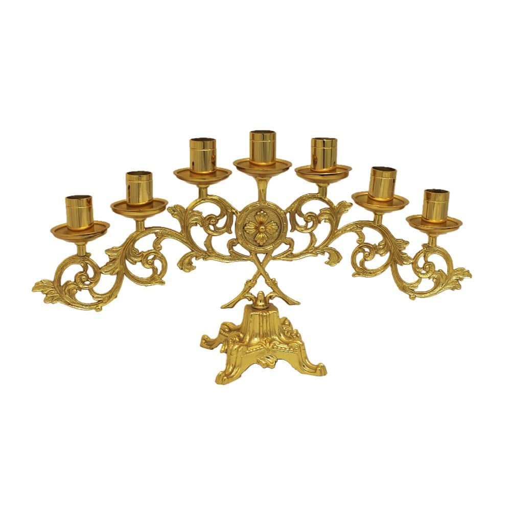 Il candeliere a sette fiamme in ottone dorato è un candeliere riccamente decorato formato da sette bossoli dove allogiare le candele