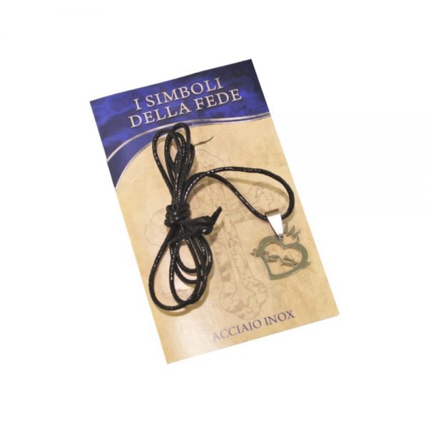 Collana ciondolo con cuore e corona spine in acciaio con cordino