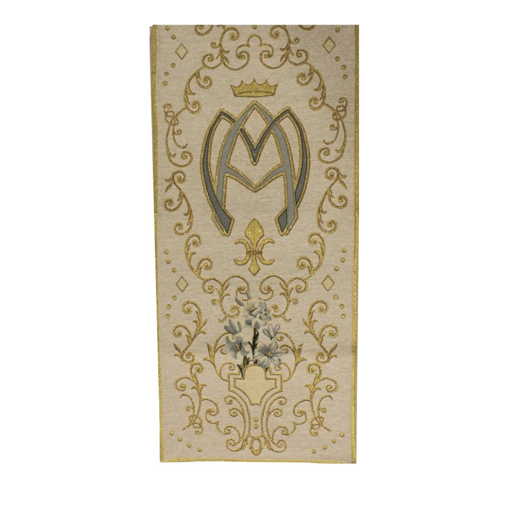 Il copri Ambone bianco con Croce e arabeschi è un copri ambone tessuto al telaio, stile arazzo, che presenta dei ricami dorati, i quali rappresentano delle croci.