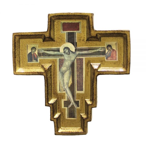 Croce 20×26 cm dorata con cornice Cimabue stampa su tavola legno