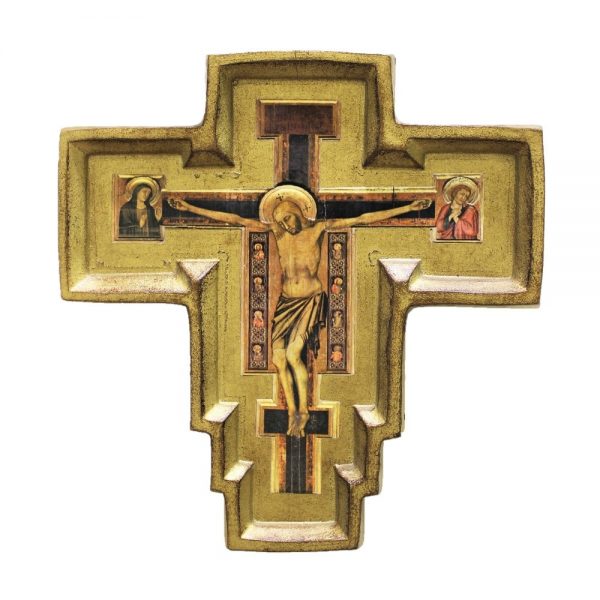 Croce 20×26 cm dorata con cornice Giotto stampa su legno
