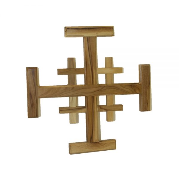 La croce potenziata Gerusalemme in ulivo è una croce realizzata in legno di ulivo chiaro.