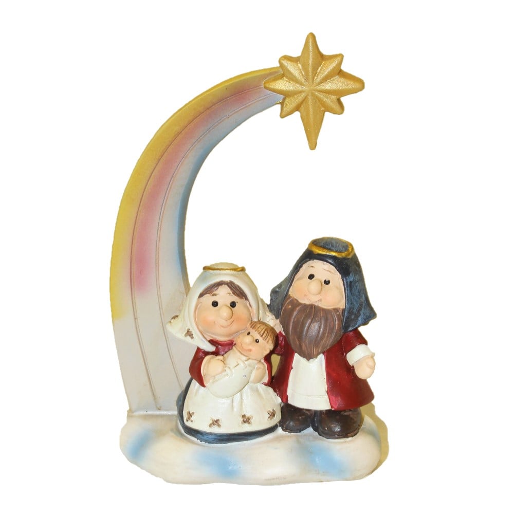 La Natività spiritosa cm 12 in resina e’ un simpatico presepe in resina colorata alto cm 12. Il gruppo unico composto da Madonna, San Giuseppe e Bambino e’ dipinto con colori tenui.