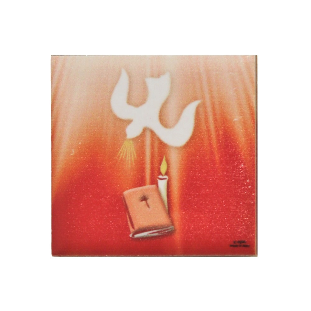 La piastrella magnetica colomba cresima è una piastrella che rappresenta una colomba bianca, su uno sfondo rosso.