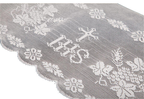 Pizzo bianco con simbolo IHS in cotone